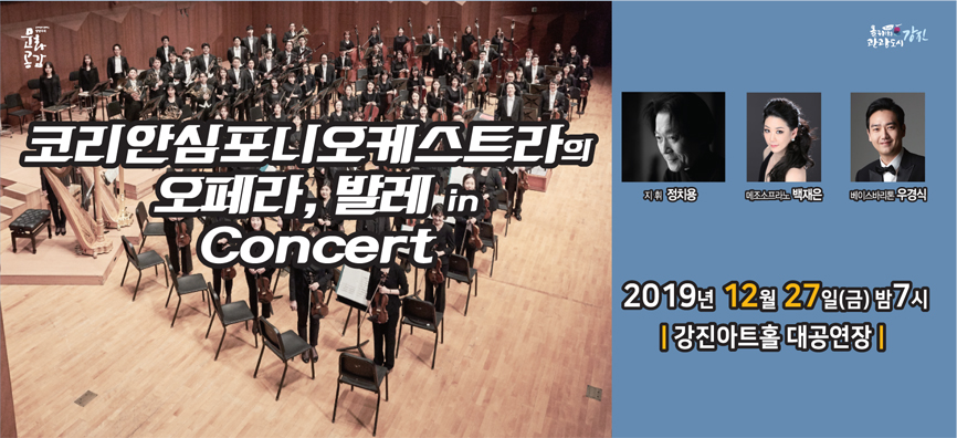 대한민국을 대표하는 코리안심포니오케스트라의 ‘오페라 발레 인 콘서트’ 공연이 오는 12월 27일(금) 밤7시 강진아트홀 대공연장에서 막이 오른다.