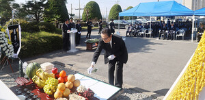 제77주년 순국 경찰관 합동추모제가 지난 7일 해남경찰서 내 충혼비에서 열렸다.해남재향경우회가 주관한 이날 행사는 1948년 대한민국 정부 수립 이후 극심한 혼란기를 틈타 좌익 무장폭도들이 해남경찰서 등을 습격하자 이들과 맞서 싸우다 숨진 경찰관 26명을 추모코자 마련됐다.순국 경찰관 26명을 기리는 충혼비는 1950년 당시 지역사회 모금을 통해 만들어졌지만 그동안 유실되고 제 역할을 못하다 복원작업을 거쳐 1999년 해남경찰서 신청사 이전과 함께 현 자리에 위치하고 있다.해남재향경우회는 지난 2023년 75년 만에 처음으로 합동추