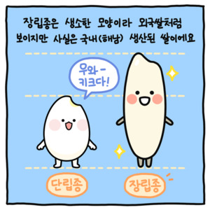 해남군이 자체 육성한 장립종 쌀의 우수성을 알리고 신규 쌀 시장을 확보하기 위해 노력하고 있는 가운데 ‘장립종 쌀 캐릭터’를 만들고 인식 개선에 나섰다. 이번 캐릭터 제작은 기후변화와 밥쌀용 쌀 과잉 생산 등에 따라 추진하고 있는 해남군 장립종 쌀의 인지도를 높이고 건강에 관심이 많은 소비층을 확보해 소비 촉진에 기여코자 추진됐다.군은 ‘해남 장립종 쌀, 밥상 위의 특별함을 전하다’라는 슬로건을 가지고 장립종 쌀 캐릭터를 활용한 4컷 만화와 이모티콘, 기념품 등을 제작했으며 SNS 채널을 연계한 온라인 홍보와 박람회, 지역 축제 등