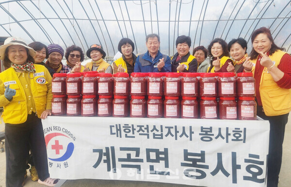 대한적십자사 해남지구협의회 계곡면봉사회(회장 김영미)가 지난 18일 ‘사랑의 고추장 나눔 봉사’를 진행했다.