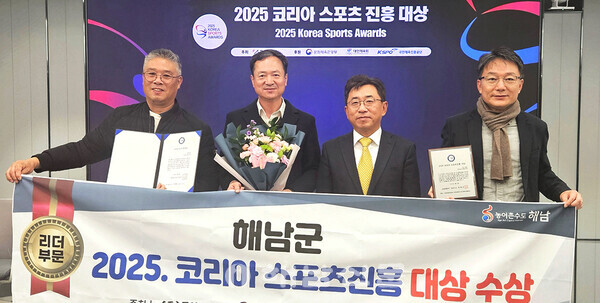 해남군이 2025 코리아 스포츠진흥대상에서 리더부문 대상을 수상하며 스포츠마케팅 역량을 인정받았다.